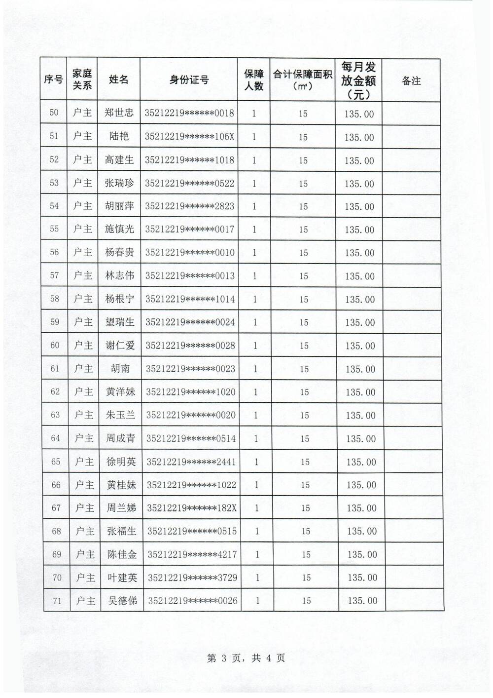 建阳区2019年廉租住房租赁补贴十一月发放明细