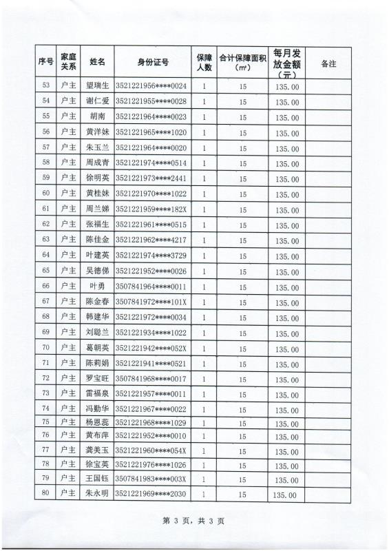 建阳区2020年廉租住房租赁补贴三月发放明细