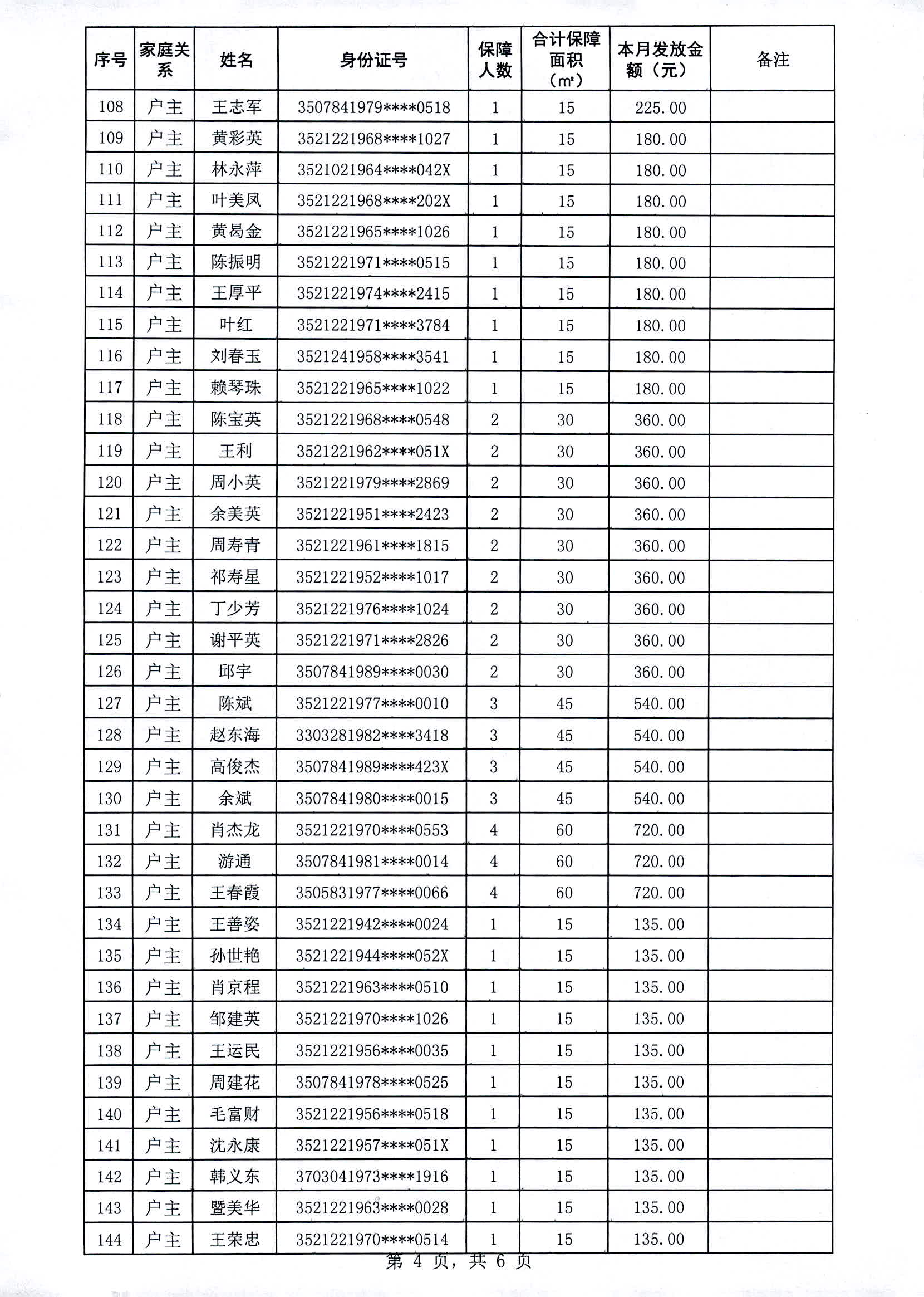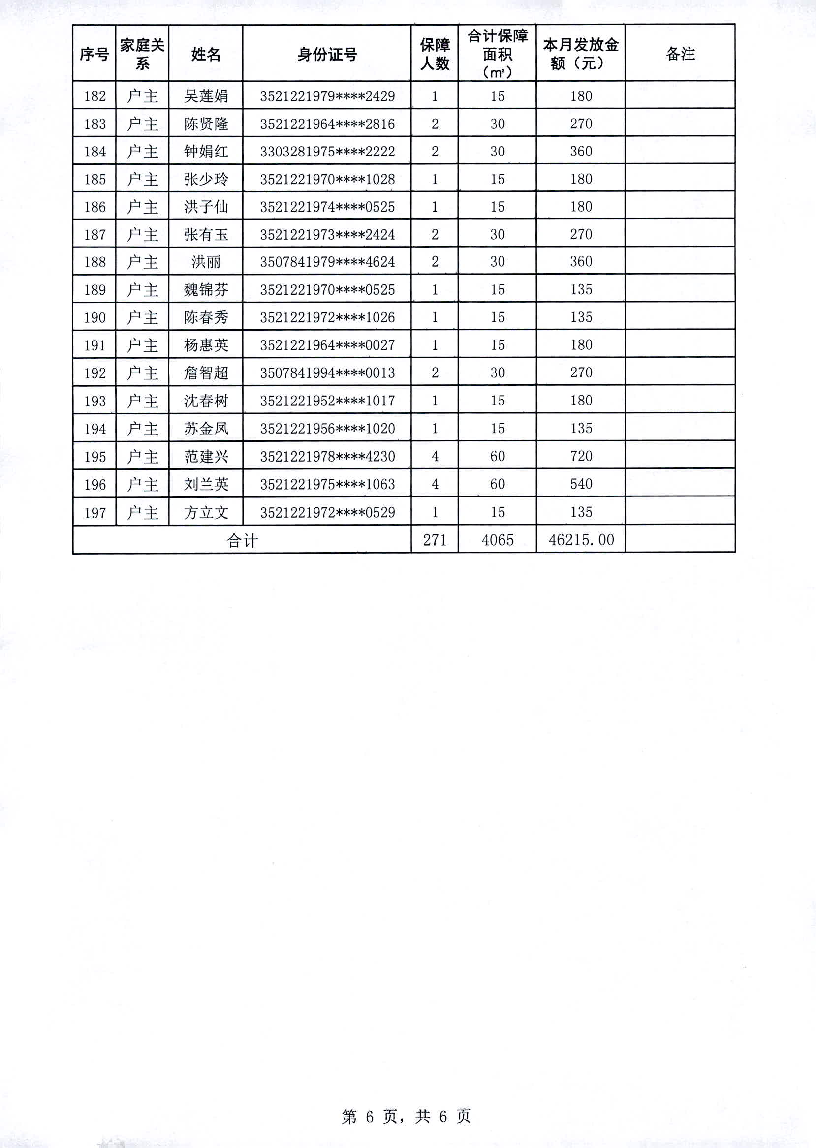 建阳区2021年公共租赁住房租赁补贴五月发放明细