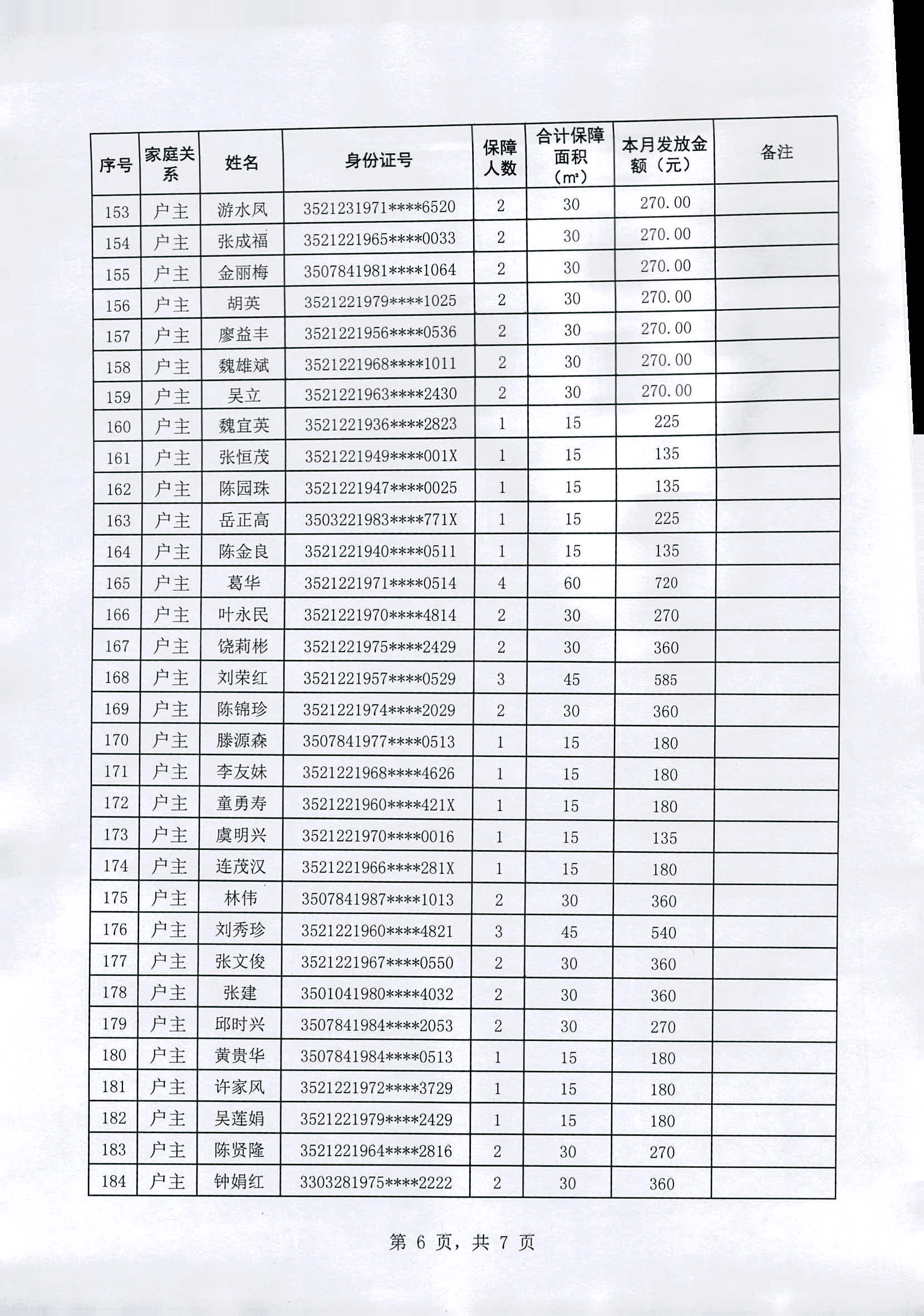 建阳区2021年公共租赁住房租赁补贴六月发放明细